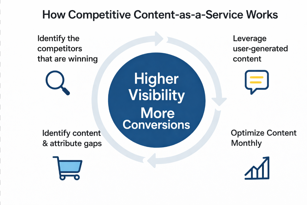 The DynEcom founders have specialized in eCommerce optimization and content creation for the past decade. Historically, these services have come at a steep cost to develop static one-time content. As artificial intelligence technologies began to emerge, the team adopted new strategies to lower the cost & dramatically improve the success. The team specializes in eCommerce and has helped optimize sites including Staples, CVS, Amazon, CDW, Lowe’s, Walmart, and others.